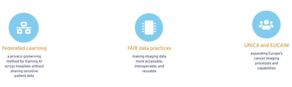 UNICA is a European initiative broadening and strengthening the reach of the European Cancer Imaging Initiative (EUCAIM). By enabling secure collaboration between hospitals, advanced imaging integration, and responsible AI development, UNICA supports earlier detection and personalised cancer care across Europe.